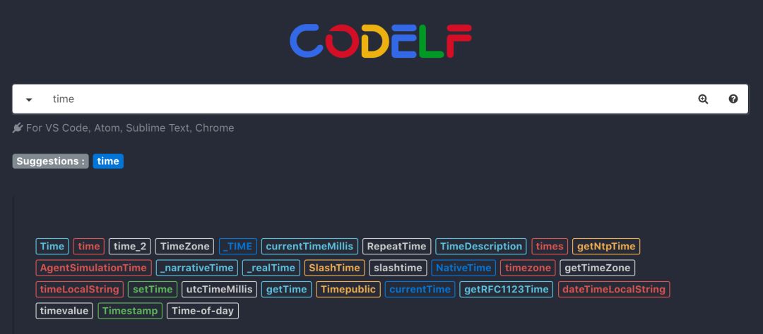 直接在 Codelf 网站上搜索命名建议,可以直接访问下面的地址: