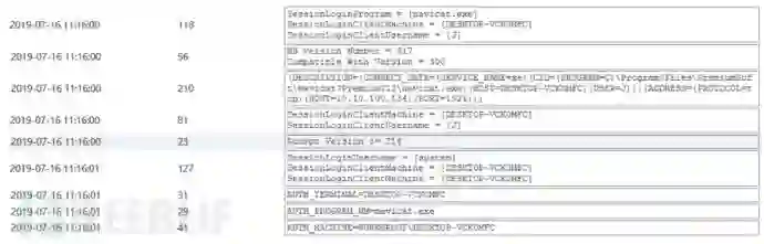 从以上对Oracle数据库的简短访问请求中我们可以看到,除了访问IP、端口和协议外,还能够采集的参数信息有客户端应用程序名(navicat.exe)、客户端主机名(DESKTOP-VCK0MFC)、客户端主机用户名(J),以及访问时使用的数据库账号名(system)和实例服务名(xe),以上称为准入控制因子。