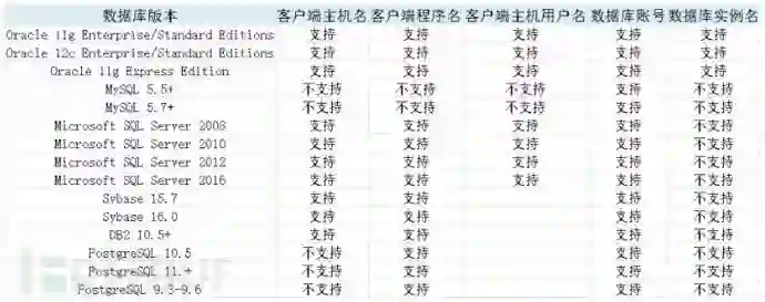 企业组织架构设计时,可选用数据库软件种类众多,协议类型、加密方法各不相同,我们通过协议解析获得的数据库应用协议内的参数信息也不相同,其部分举例如下: