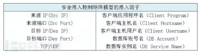 创新的安全准入控制模型,以数据库协议的解析为核心基础,加入流量解析识别而来的准入因子,形成更完善的可选准入控制因子集合。