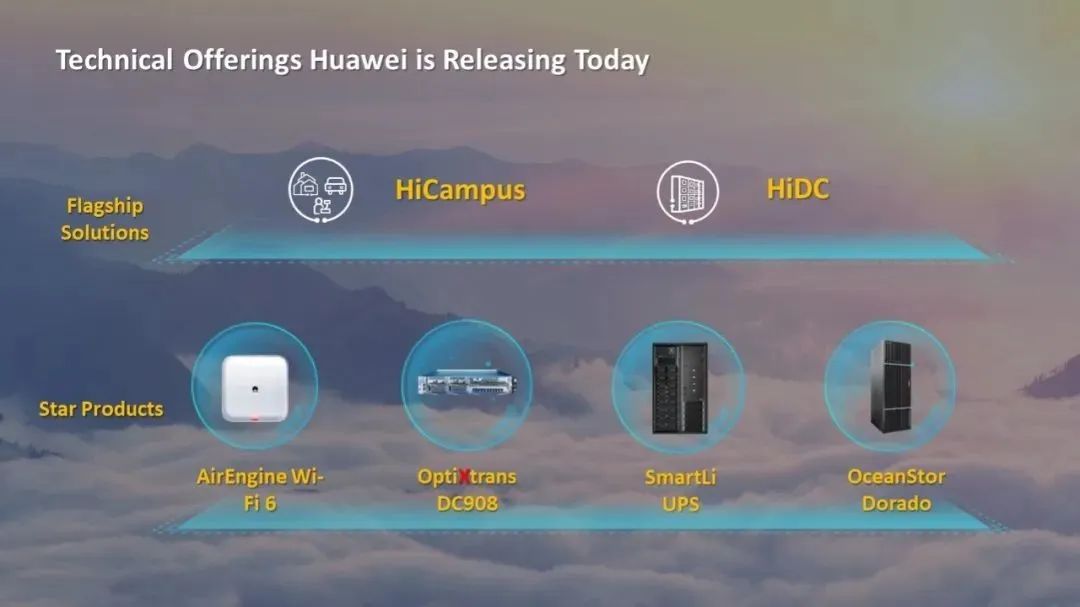 那么,如何打好智能化世界的物理基础?新联接、新计算、新平台和新生态将为智能世界2030打造坚实底座。为此,华为重磅推出两大旗舰解决方案Huawei HiCampus园区解决方案和HiDC数据中心解决方案,以及SmartLi UPS、新一代OceanStor Dorado和新一代AirEngine Wi-Fi 6三大明星产品。