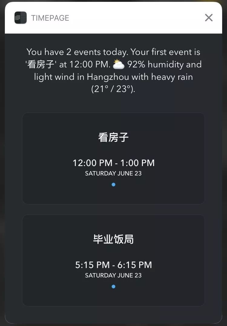 用一个应用代替多个 App:多使用多功能的 App。日历工具 Timepage 的日程提醒通知中会附有当天的天气和交通情况,我一般就不需要再依靠单独的天气和导航 App,每天早晨一条通知就能一览当天的的工作、天气甚至交通情况。
