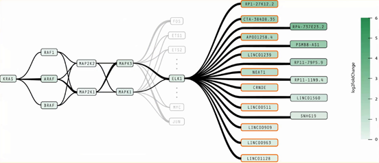 首先,针对如何与领域专家合作,Forbes教授介绍了与生物学家合作研究生物信号通道的可视化问题。Forbes教授指出,传统的信号通道数据可视化是复杂的网络图,使用自动生成网络布局的工具也不能突出展示专家关注的节点和通道。因此,他提出了定制化的信号通道可视化方法RasVis,如图1所示,图中的节点表示与癌症研究相关的蛋白质种类,节点之间的连接表示Ras信号通道。该方法能够降低网络复杂度,选择性地展示具体研究中重点通道的相关信息。通过这个项目的介绍,Forbes教授提倡开发针对更具体的目标用户的更专门的可视化工具。