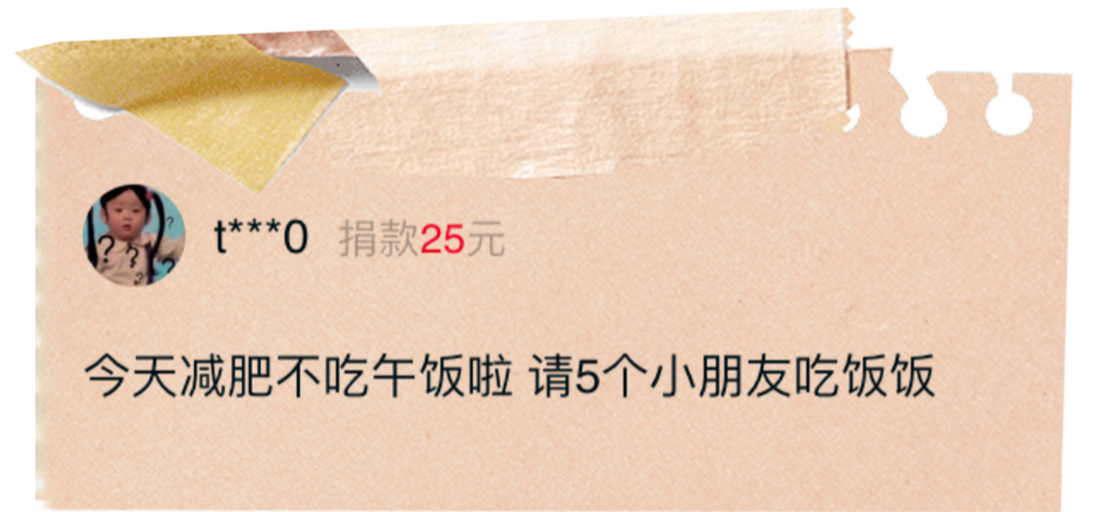 中午减肥不吃饭啦,拿这笔钱给小朋友们买饭: