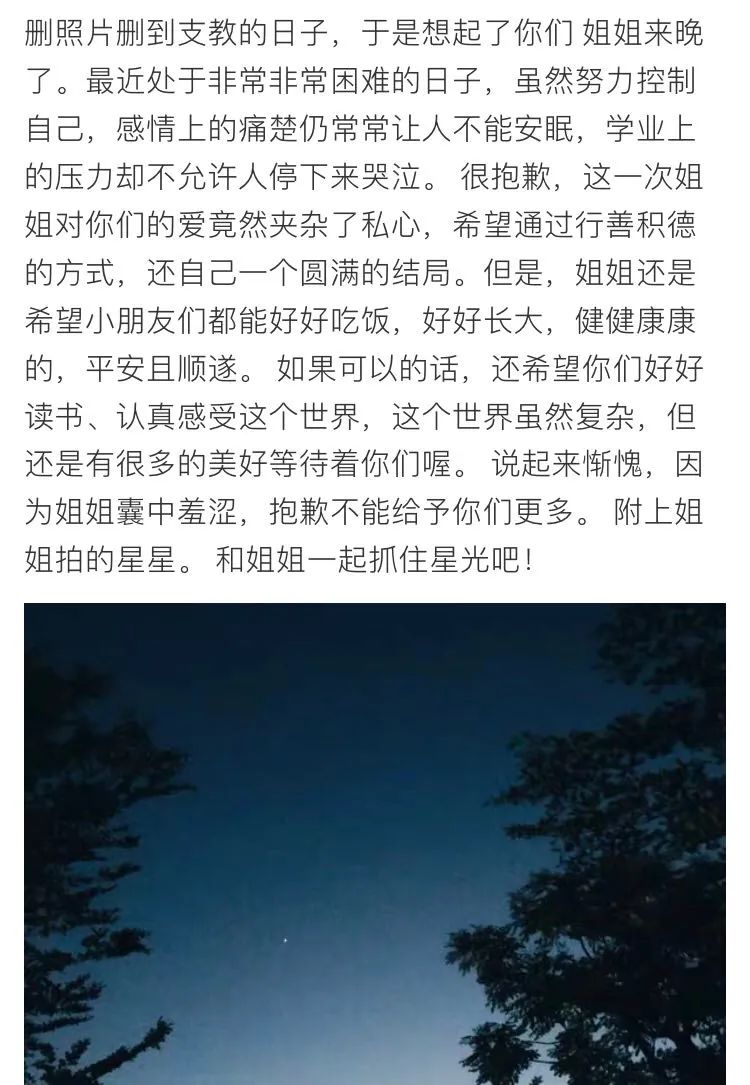 最让院办动容的是下面这条评论吧,捐赠者在祝福后附上了自己拍下的星星照片,对几千公里外和她一同仰望这片星空的孩子呼喊: