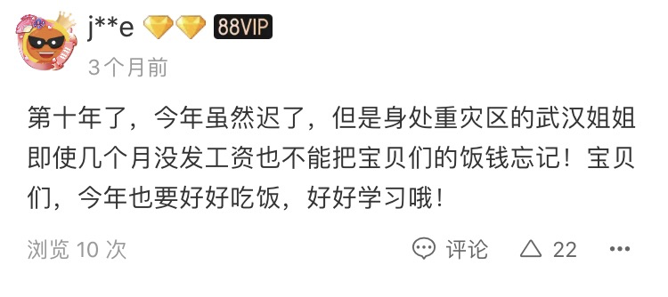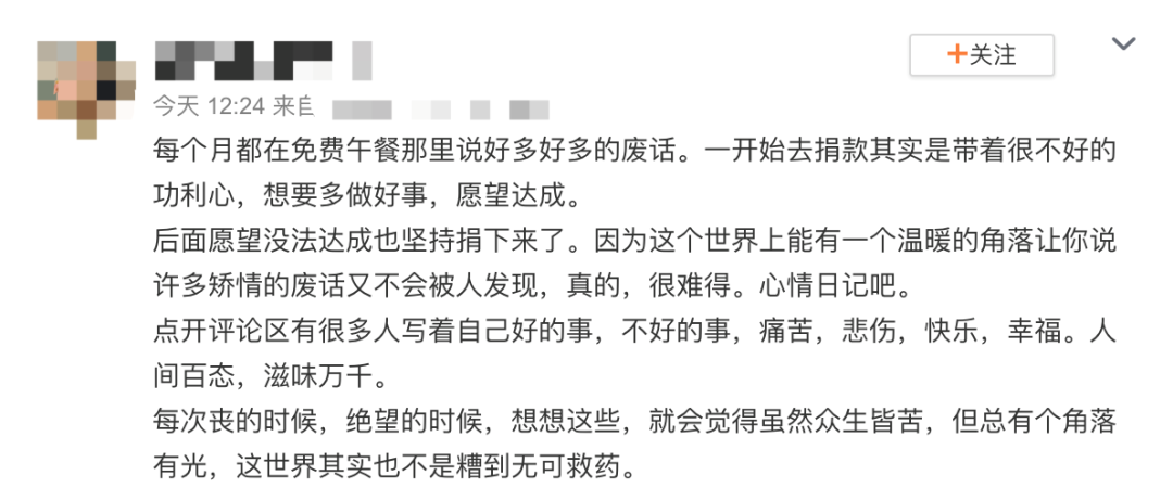 免费午餐的评论区,演变成祈福圣地绝非偶然。毕竟一对一捐赠时,肯定不会有人在信里这么写。