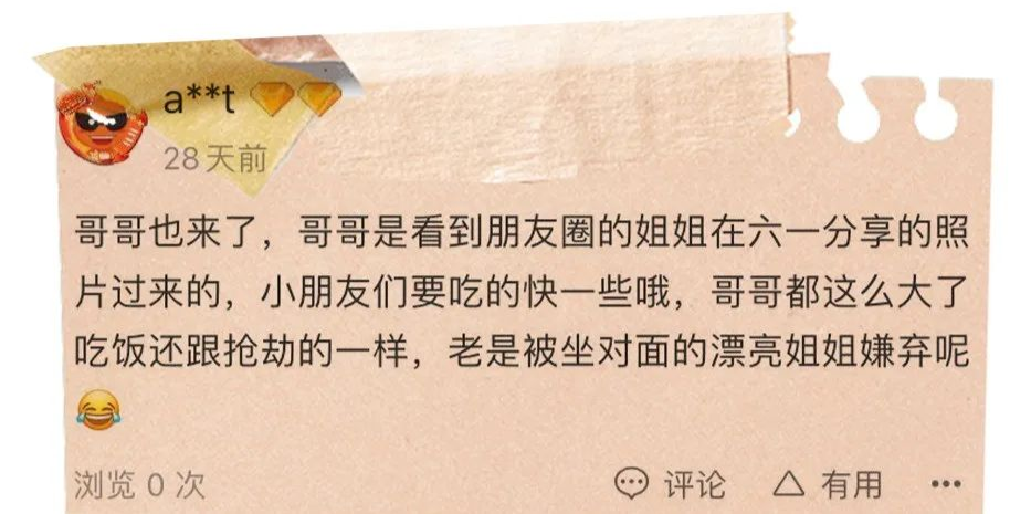 如果临近节日,像儿童节或者端午节,你能看到年轻人们在留言区问候小朋友们,吃没吃粽子,放没放假。就像在关心一个似乎很陌生但又熟悉的远方亲戚孩子。