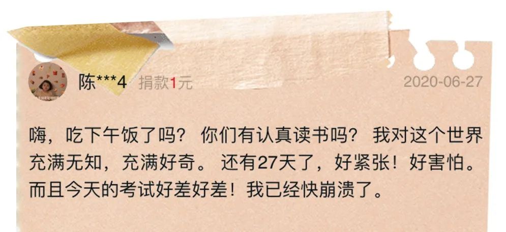 这是一个爱心午餐的评论区,也是一个青年的互联网树洞,里面有bb工作破事儿的职场人,也有即将在几天后面临今年因为疫情而延期到七月高考的高三学子。