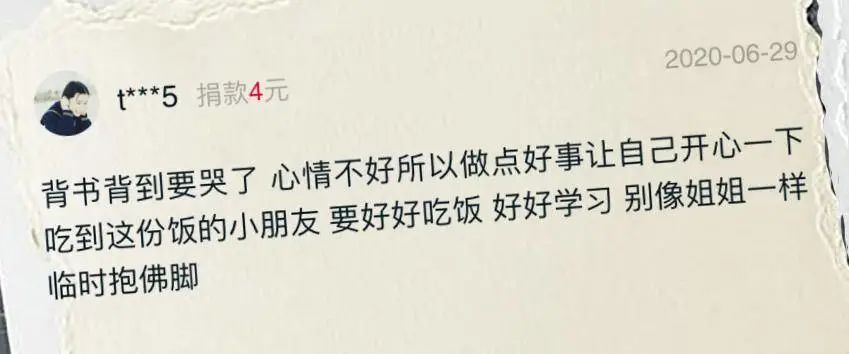 在延长寒假、延迟开学,返校又因为地区疫情关系只能回家学习的高三学生来说,今年的高考绝不是一个有利的决战环境。他们购买爱心午餐,抽空在评论区里跟也许根本就看不到这些信息的贫困地区小朋友们说话。