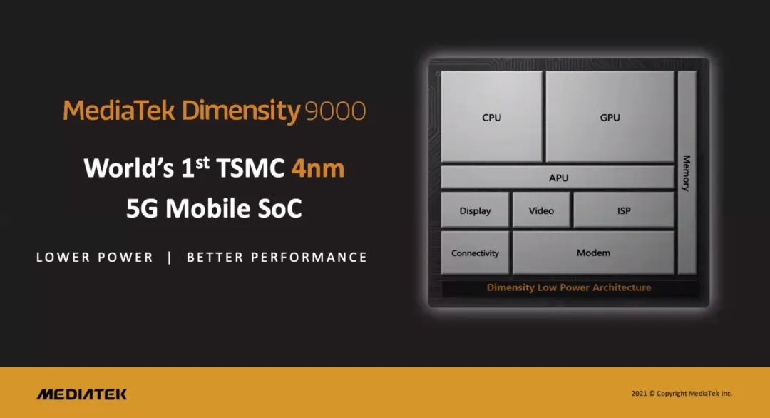 今天联发科正式发布联发科下一代旗舰处理器天玑9000,同时公布了天玑9000的细节参数。联发科天玑9000基于台积电4nm工艺制程打造,这是全球首款台积电代工的4nm手机芯片,安兔兔跑分突破了100万分,这也是安卓阵营中目前已知的跑分最高的手机芯片,远远超过了当下的骁龙888 Plus等旗舰处理器。
