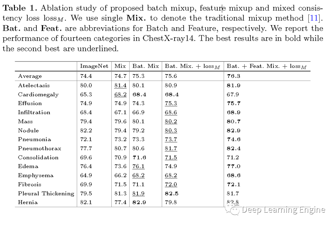 ChestXray14,MIMIC-CXR,CheXpert和MURA四种不带标签的约70万数据进行无监督预训练。只用了ChestX-ray14 进行消融实验以选择合适的超参数。