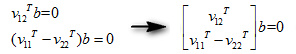 我们看到B为对称矩阵,真正有用的元素只有6个(主对角线任意一侧的6个元素)。把B带入前面两个约束条件后可转化为: