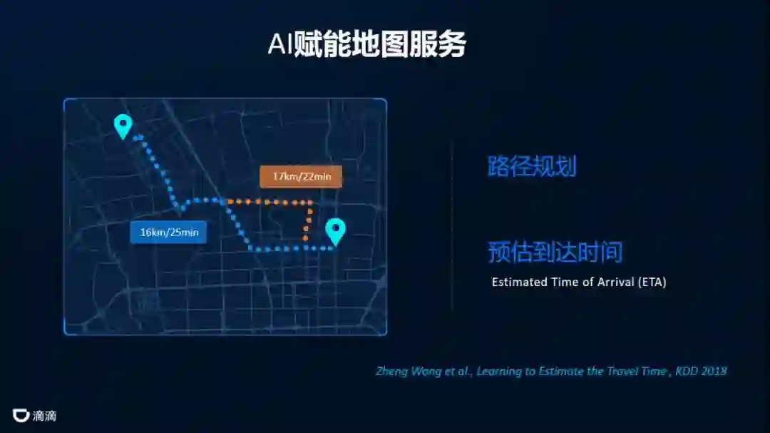 叶杰平指出,地图是滴滴的核心能力,也是多数滴滴用户能够感知到的系统。如果定位不准、导航偏离、时间预估不准,用户就可以感知得到。滴滴在地图有深度的投入,研发了一套基于深度学习、强化学习、业界领先的地图系统,包括路径规划、时间预估。
