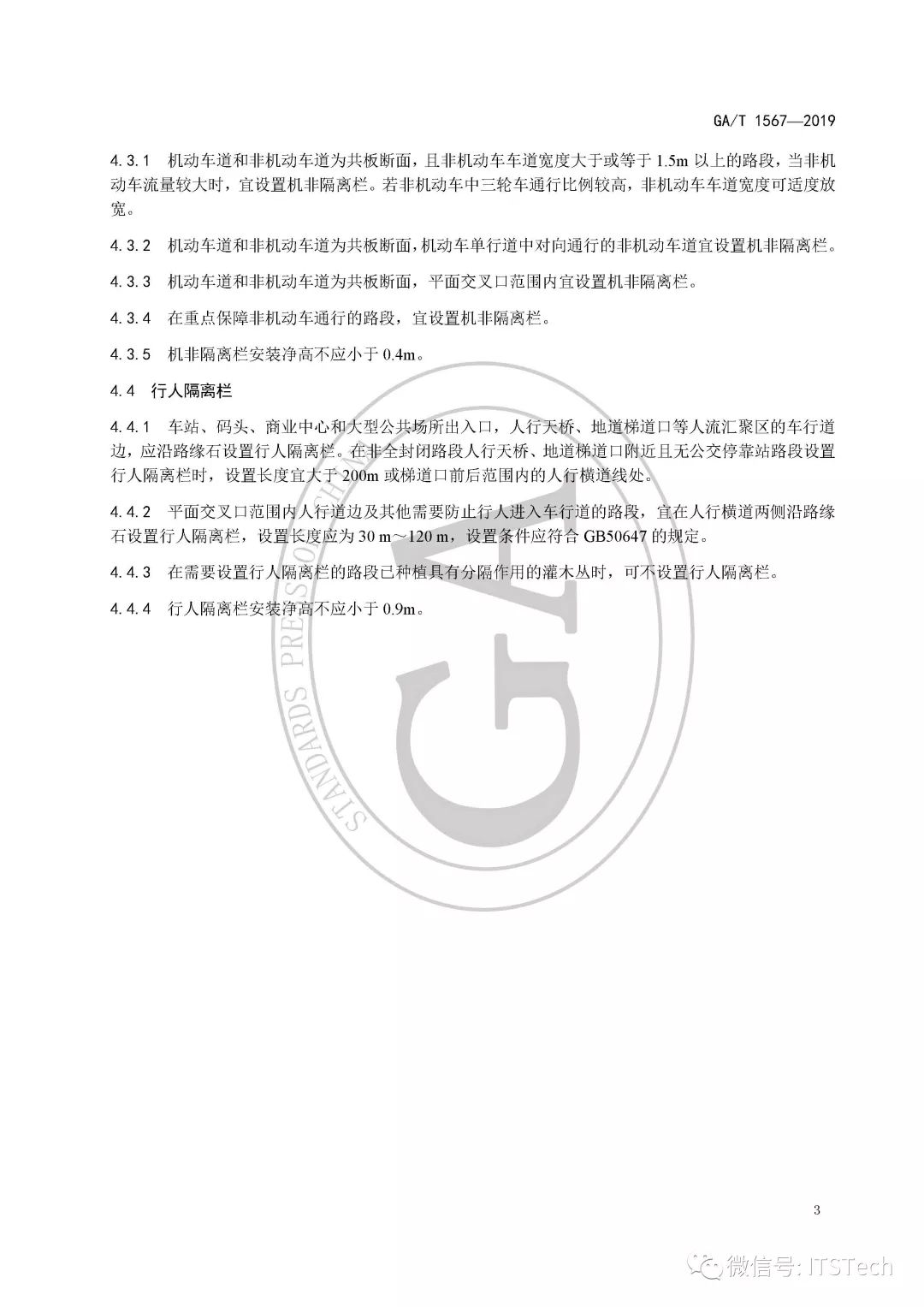 三、对道路上如何设置交通隔离栏进行了规定,在【设置要求】章节中明确了:设置机动车隔离栏和机非隔离栏应与相应的道路交通标线相匹配,不应与道路交通标志、标线、信号灯等其他交通管理设施冲突。交通隔离栏安装设置应牢固、耐久、醒目,便于维护。交通隔离栏设置不应便于行人攀爬、穿越、跨越。交通隔离栏设置不应妨碍安全行车视距,交通隔离栏上不应安装广告,不宜安装宣传牌。