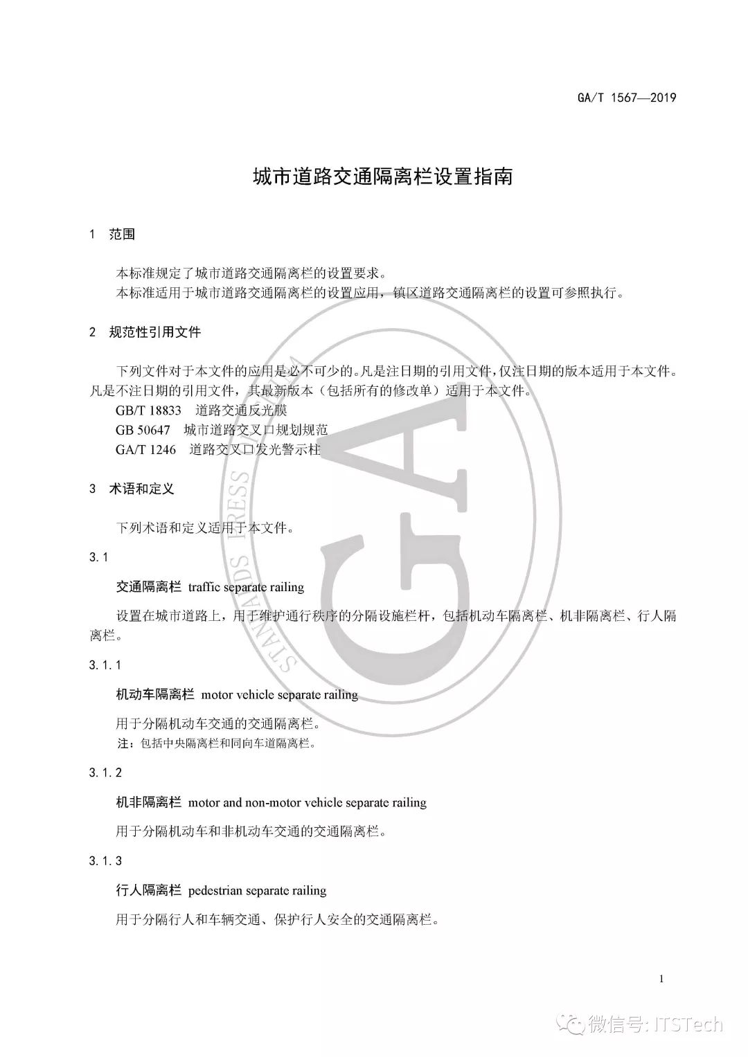 一、本标准适用于城市道路交通隔离栏的设置应用,镇区道路交通隔离栏的设置可参照执行。