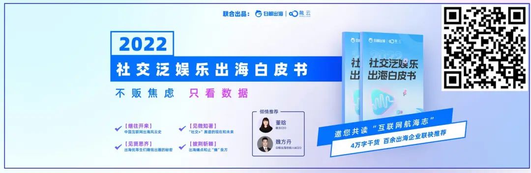 9 月 15 日,融云在“超浪 2022 社交泛娱乐出海嘉年华”活动中,与白鲸出海联合发布了《2022 社交泛娱乐出海白皮书》(以下简称《白皮书》),回顾了国内互联网出海的历史,并聚焦社交泛娱乐作出系统的行业洞察与数据解读,对企业出海的现状、痛点与挑战进行了深度剖析。