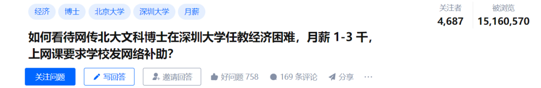 深大博士任教经济困难,月薪1-3千的话题也迅速登上了知乎热榜。