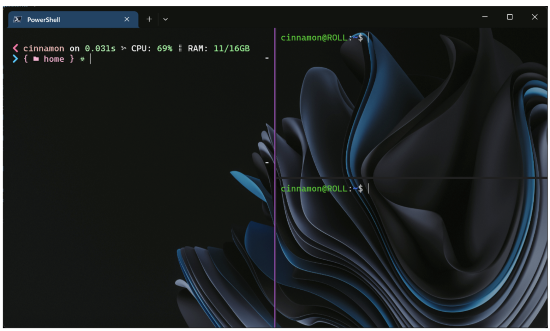 Windows Terminal 支持分屏和多个窗口。单击“+”时候,可以打开默认配置文件的新的标签页;按住「Alt」并单击「+」按钮可以打开一个带有默认配置文件的新窗口。
