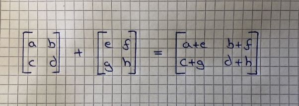 矩阵间的加减法非常简单直接。这里要求,两个矩阵需要维度相同,运算结果也会是一个相同维度的矩阵。你只需要将第一个矩阵中的每一个元素和第二个矩阵中对应位置的元素相加或者相减就可以了。如下图所示: