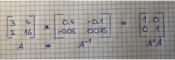 下图展示了一个矩阵乘以它的逆矩阵,计算结果是一个 2×2 的单位矩阵。