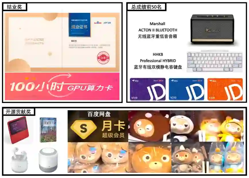 参与课程、致敬开源,即可获得:PaddlePaddle官方结业证书、Marshall ACTON II BLUETOOTH无线重低音音箱、HHKB Professional静电容蓝牙键盘、Tesla V100 GPU算力卡、百度网盘超级会员等超多奖励!上不封顶!更有直播间花式抽奖等你来拿!