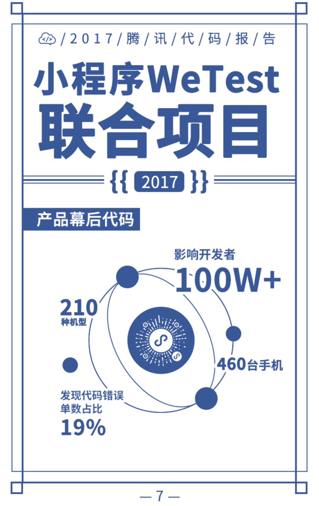 ● 小程序WeTest联合项目产品幕后代码已经影响100W+开发者,210种机型,发现代码错误单数占比19%;