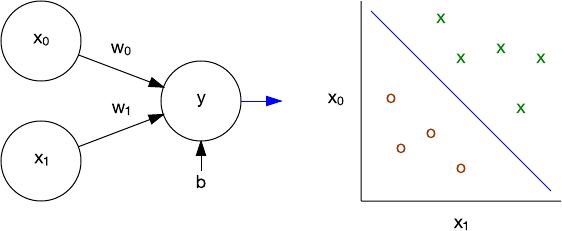感知器是单层神经网络的一个早期监督学习算法。给定一个输入特征向量,感知器可对输入进行具体分类。通过使用训练集,网络的权重和偏差可为线性分类而更新。感知器的首次实现是 IBM 704,接着在自定义硬件上用于图像识别。