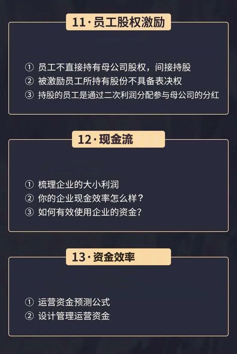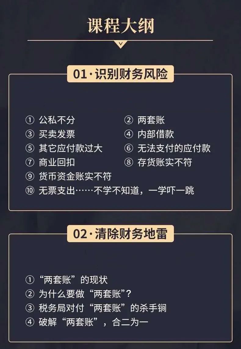 从原罪梳理、财税问题、节税避税、资金管理四大板块出发,让你识别公司容易触发的财务风险,看懂财务报表,合理避税,提高资金的利用效率。