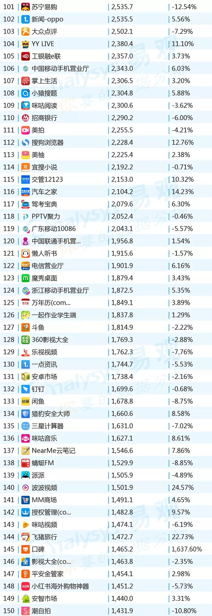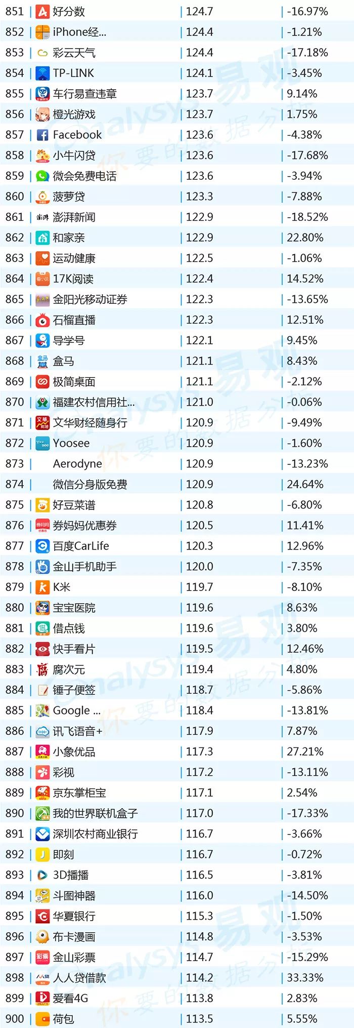 易观2017年度榜单大盘点系列,即将还有更多榜单将陆续公布: