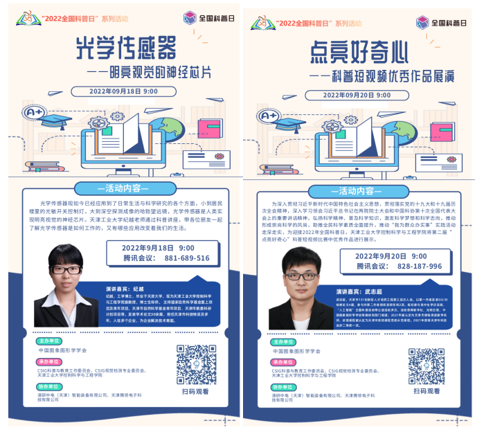 为弘扬科学精神、普及科学知识,激发科学梦想和科学志向,倡导崇尚科学的风尚,推动“我为群众办实事”实践活动走深走实,2022年全国科普日活动期间,中国图象图形学学会主办,CSIG科普与教育工作委员会、CSIG视觉检测专业委员会及天津工业大学控制科学与工程学院共同承办了 “点亮好奇心”云上科普展示及宣传讲座活动。
