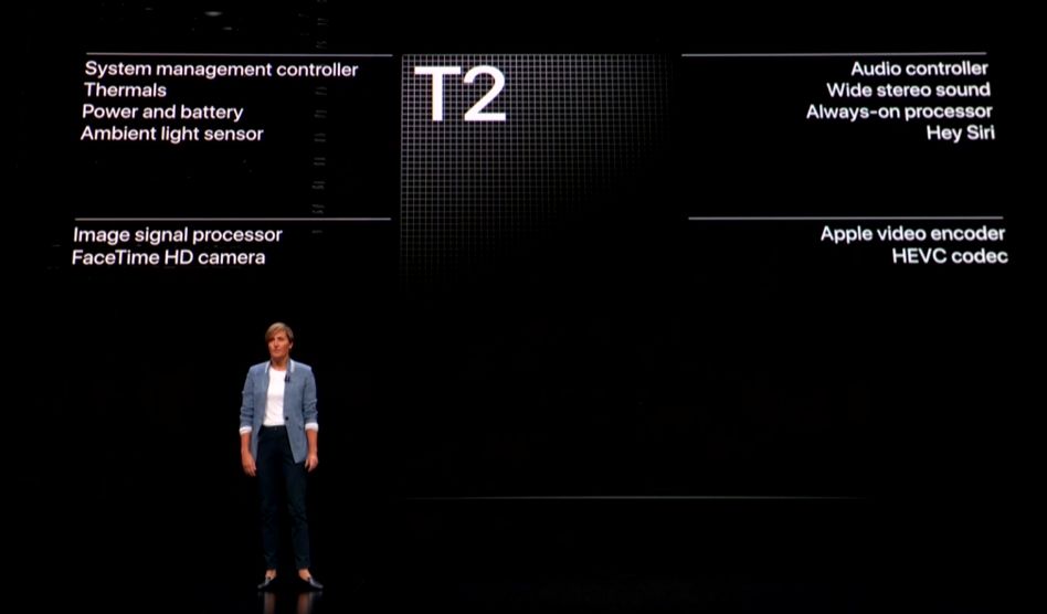 当然了,T2 芯片还与其他 Mac 系统中的几款控制器进行重新设计与整合,例如系统管理控制器、图像信号处理器、音频控制器和固态硬盘控制器,从而为 Mac 带来了多项新功能。比如,T2 图像信号处理器能与 FaceTime 高清摄像头协作,进一步提升色调映射和曝光控制,还能基于面部识别技术进行自动曝光并自动调节白平衡,以及基于音频控制器带来“嘿 Siri”。