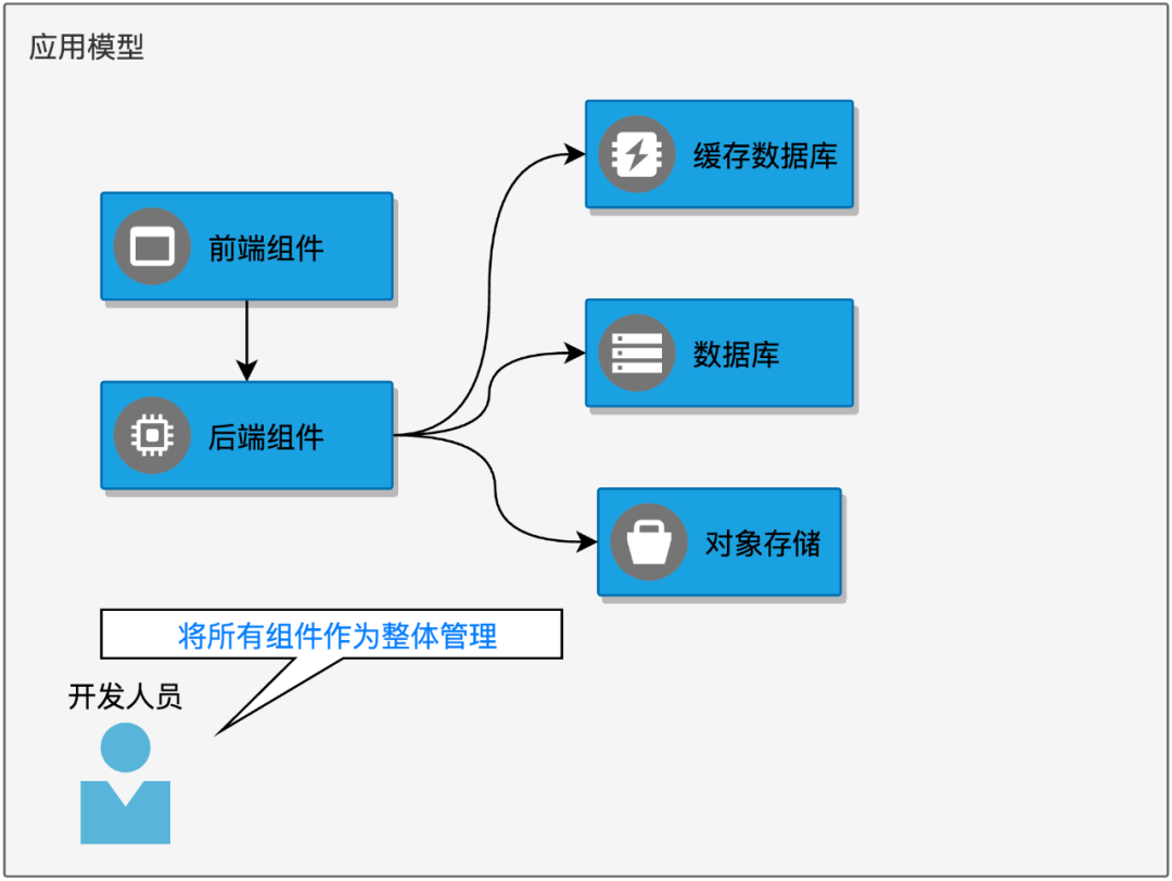 从工作负载层面上讲,Kubernetes 只通过 Deployment、Statefulset 等抽象描述单个组件的特征,然而多数情况下,开发人员开发出的业务系统会包含若干微服务组件。那么如何对整个业务系统进行统一的管理就变成了一个问题。解决方案之一,就是通过云原生应用平台,在单个组件之上,抽象出应用这个概念。应用应该是由人为规定的一组服务组件(workload)组成,服务组件之间具有显式或隐式的关联调用关系,彼此之间有机组合成为一个整体,作为一套完整的业务系统对外提供服务。