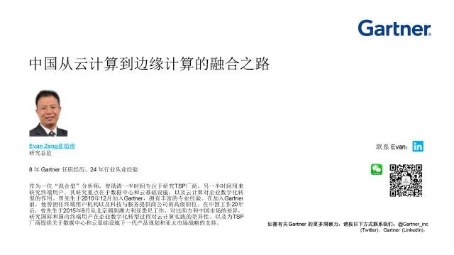 边缘计算正在支持日益发展的物联网应用。企业必须了解这一新兴技术趋势,才能采用它来发展其数字化业务。在本次网络研讨会中,Gartner研究总监曾劭清将探讨边缘计算及其与云计算的关系。他还将基于大中华区独特的市场格局对这些观点做出进一步阐述。
