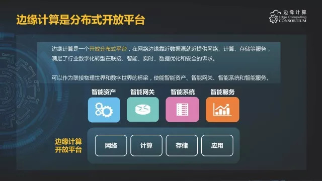 2016年11月30日,边缘计算产业联盟理事长、中国科学院沈阳自动化研究所所长于海斌在边缘计算产业联盟成立大会上介绍了Edge Computing的定义,边缘计算是指在靠近物或数据源头的网络边缘侧,融合网络、计算、存储、应用核心能力的开放平台,就近提供边缘智能服务,满足行业数字化在敏捷联接、实时业务、数据优化、应用智能、安全与隐私保护等方面的关键需求。对物联网而言,边缘计算技术取得突破,意味着许多控制将通过本地设备实现而无需交由云端处理反馈,其处理过程也将在本地边缘计算层完成。这无疑将大大提升处理效率,同时大大减轻云端的负荷,由于更加靠近用户,还可为用户提供更快的响应,将用户需求解决在边缘。