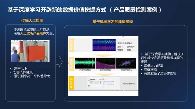 (1)质量提升的几个应用方向:如何为小批量的产品生产实现动态的过程优化成为了质量控制的难点,基于对被加工对象、以及生产过程中的动态缺陷检测实现加工参数的动态调整,另一个应用需求在于对影响加工质量的因素进行学习,并根据变化自动形成工艺参数的设定。