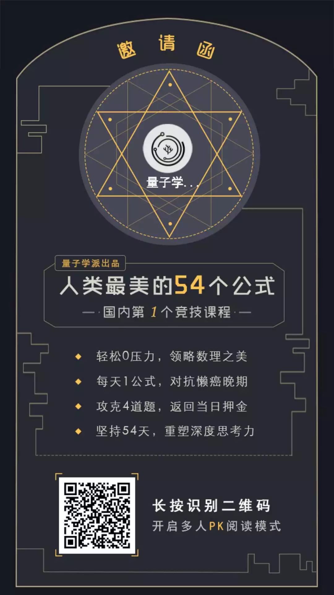 我们从一场落叶的飘落里感知一段美妙的函数,我们踮起脚尖与π跳一支双人圆舞曲……在2017年的这个秋天,量子学派联合推出《人类最美的54个公式》,用人文解析数理之美,用趣味解读科学之美,用感性点亮理性思想之光。