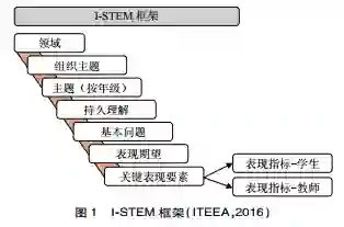 (一)I-STEM框架I-STEM模式(见图1)采用领域-组织主题-主题的框架,其核心是主题(Focal Point)⑤,每个主题属于不同领域和组织主题,都有相应的评价标准(包括持久理解、基本问题、表现期望和指标)。