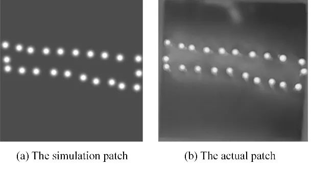 以下左图是实际制造出来的装有小灯泡的板子,而右图是这个板子的红外热图像与模拟的数字图像的对比。