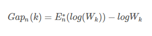 之前我们提到了WSSE组内平方和误差,该种方法是通过找“肘点”来找到较佳聚类数,肘点的选择并不是那么清晰,因此斯坦福大学的Robert等教授提出了Gap Statistic方法,定义的Gap值为[9]