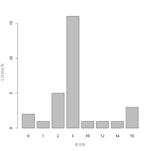 barplot(table(nb_clust$Best.nc[1,]),xlab = "聚类数",ylab = "支持指标数")