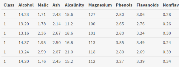 因为我们要找一个数据集进行聚类分析,所以不需要第一列的种类标签信息,因此去掉第一列。