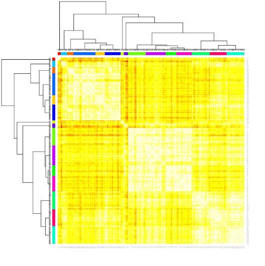 该聚类方法推荐的较佳聚类数目为15,再用热力图可视化一下