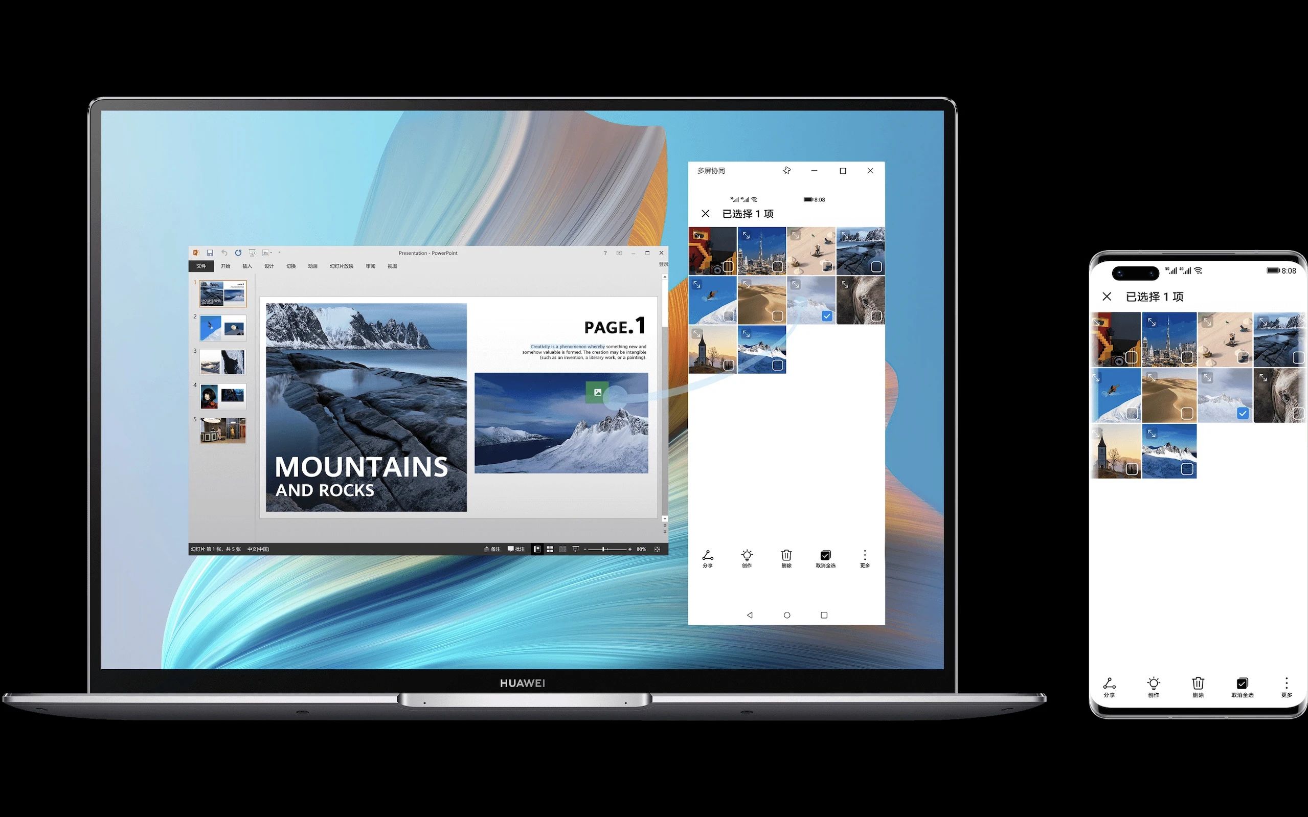 如果你觉得这样的体验已经是市面上独一无二的绝活,那华为和自家电脑产品之间的联动会更让你瞠目结舌,前面的设备联动还是基于鸿蒙系统,而华为的电脑和市面上的电脑一样是基于Windows系统的,就在这样的隔阂之下,华为开发出了一套多屏协同系统,让华为手机、华为平板可以无缝连接到华为电脑,在上面直接操作手机的各个APP,进行数据交互,如果是与平板协同,则可以把平板当作电脑的副屏幕,鼠标可以在两者之间自由切换,甚至可以自动感知彼此的相对位置。毫不夸张地说华为的这套生态是目前市面上协同工作体验最好的,哪怕面对苹果的iCloud、接力和隔空投送也不落下风,毕竟你很难在MacBook上直接存取iPhone上的文件,而iPad OS上通用控制甚至到了正式版也还没推出,比较遗憾的是这些协同局限于华为产品之间,哪怕与Windows笔记本的协同也必须是华为的笔记本。