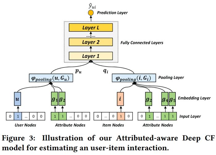 本文认为,MF 的表现受限于使用内积来捕捉 user-item 交互作用;同样,在常规的对 attributes 的利用上,单纯的让用户 embedding 和 attribute embedding 相加,也不足以捕捉 user、item、attribute 之间的联系。