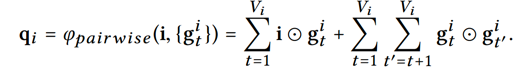 由于最大\平均 pooling 不能捕捉用户和各 attributes 之间的交互作用,所以设计了一种 pairwise pooling 的方法: