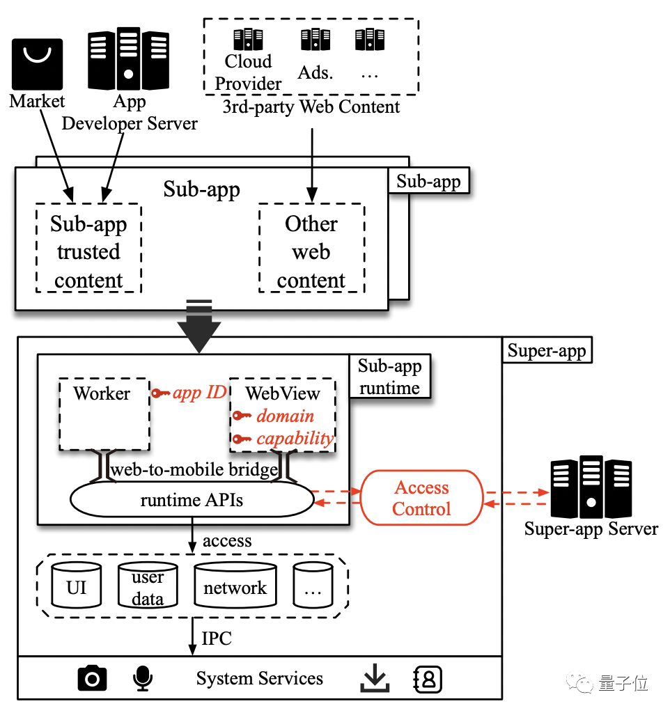 这些子APP不仅能像普通APP一样加载第三方资源,还可以访问APP提供的特权API(Application Program Interface)。