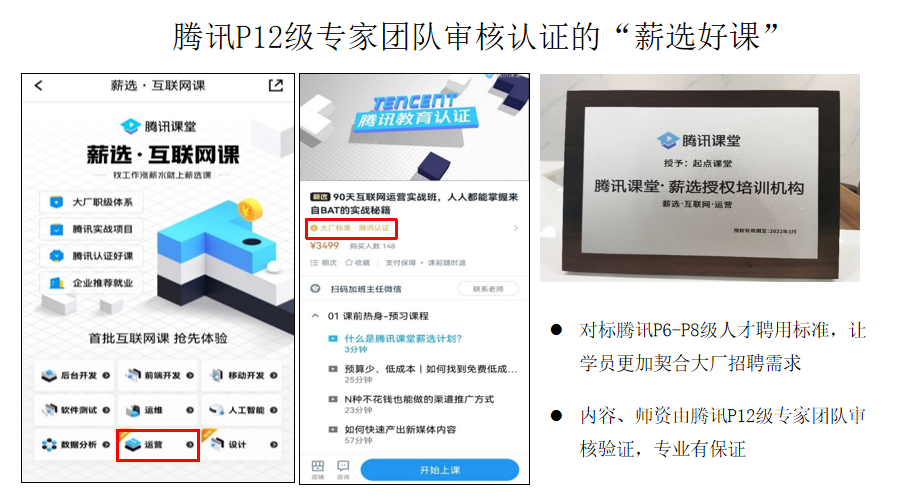 因此「人人都是产品经理」旗下起点课堂,联合腾讯课堂共同打造了《90天运营实战班》,课程荣获腾讯薪选项目认证,可以成为大家自我提升、进大厂的不而选择。