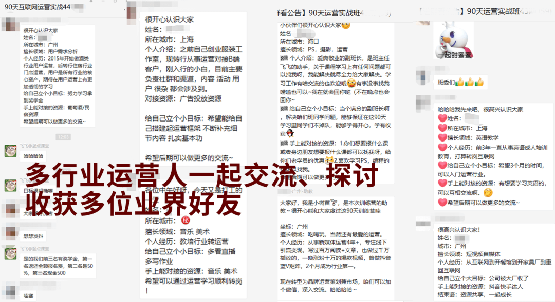 除了高质量的导师圈子,也可以帮你拓展朋友圈子,让你收获更多专业的运营朋友,一起讨论知识讨论业务。