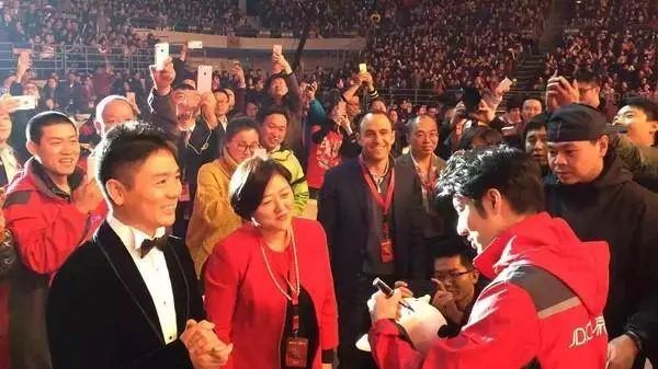 2016年12月京东年会,王力宏现身当快递员,给京东员工送福利。