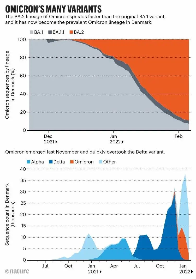 第一个已知的Omicron变体被命名为BA.1,在美国、英国在内的许多国家仍然是流行最广的病毒变体。但是与BA.15相关的BA.2的病例在丹麦、印度和中国等地国家正在上升。